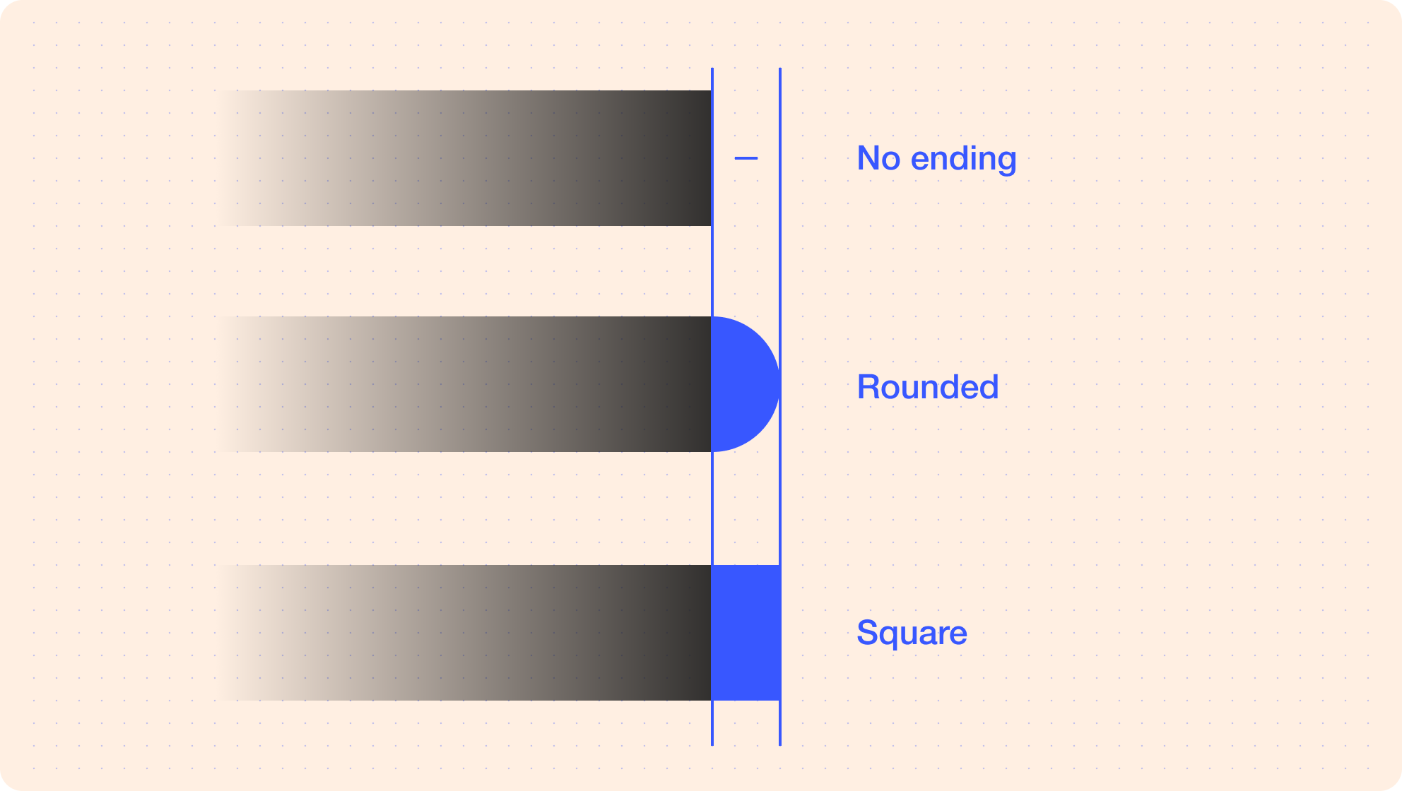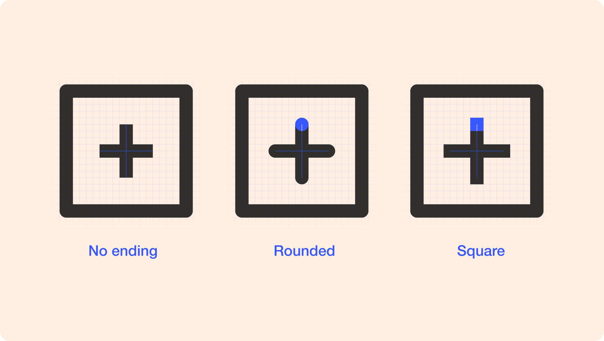 The stroke ending modifiers can have 3 different options: without endings, with rounded endings and with square endings.